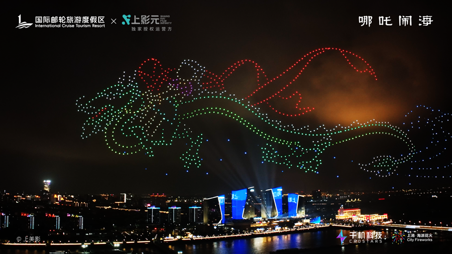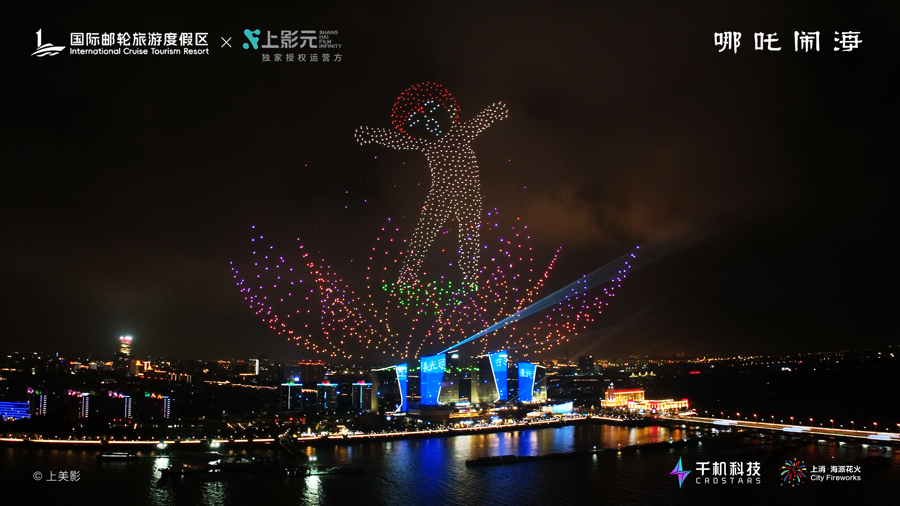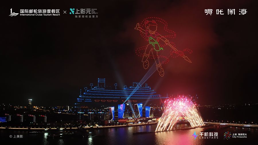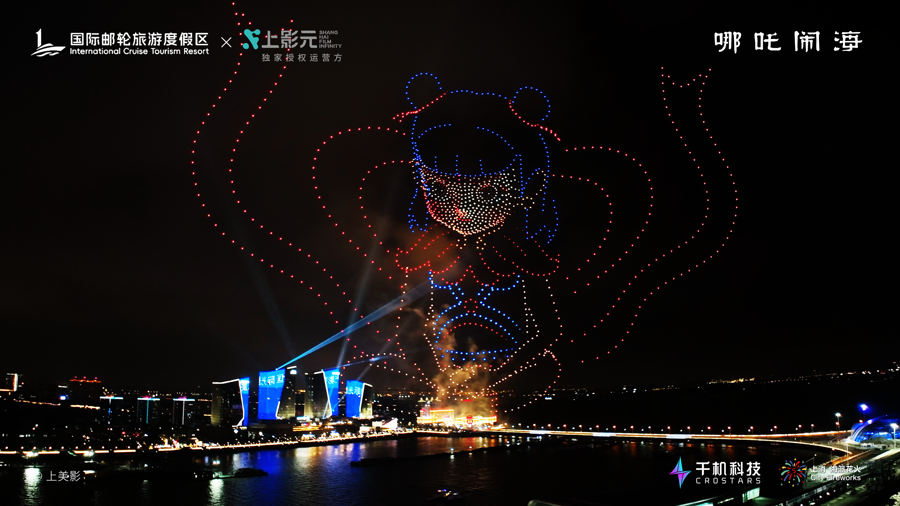 9月30日晚,上海吴淞口国际邮轮港畔的夜空被中国动画与科技之光点亮。由上影元(上海)文化科技发展有限公司(以下简称“上影元”)与上海国际旅游度假区联合出品的“吴淞口空中剧场”上演。作为本次活动的首秀剧目,“吴淞口空中剧场X《哪吒闹海》”通过无人机编队与烟花秀的创新融合,为现场数千名观众呈现了一场超越想象的沉浸式文旅盛宴。
